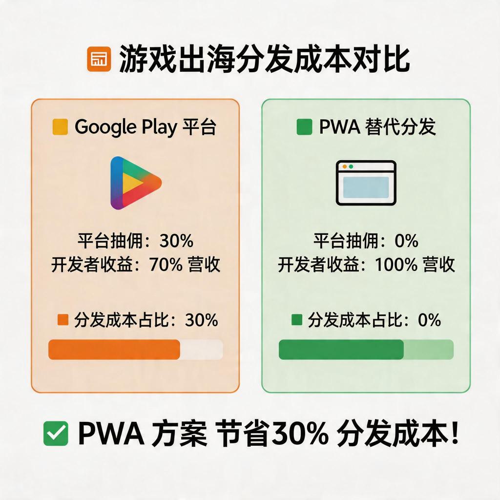 第四步:30 天后跑 CPI 对比。 有数据支撑后,对比 Meta CPI、Google Play CPI 与 PWA 安装成本。2026 年的实操数据显示,在 DST 附加费与平台抽佣双重因素下,PWA 的有效单次安装成本对多数团队低 20%~35%。